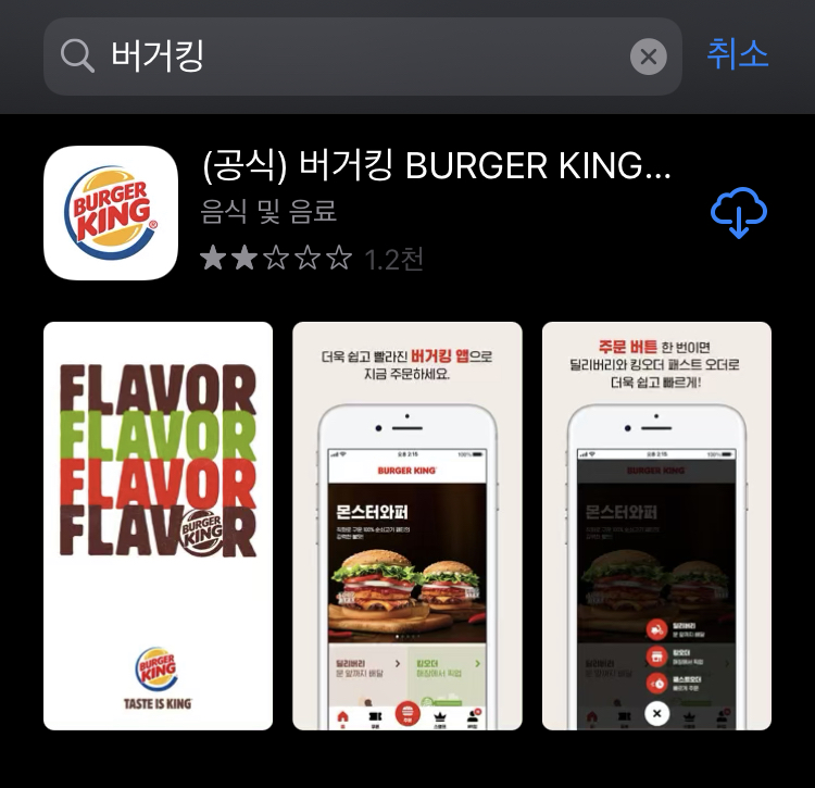 안드로이드는 플레이스토어, 아이폰은 앱스토어에 접속해 버거킹을 검색합니다.