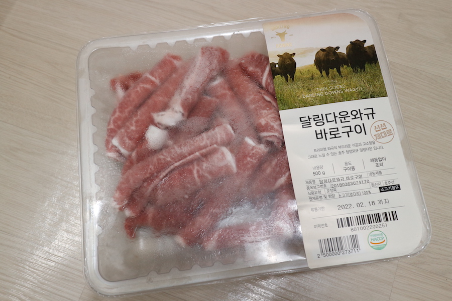 그리고 달링다운 와규를 구워줍니다. 후라이팬에 얼추 구운 뒤에 소스와 함께 끓여줄 것입니다.