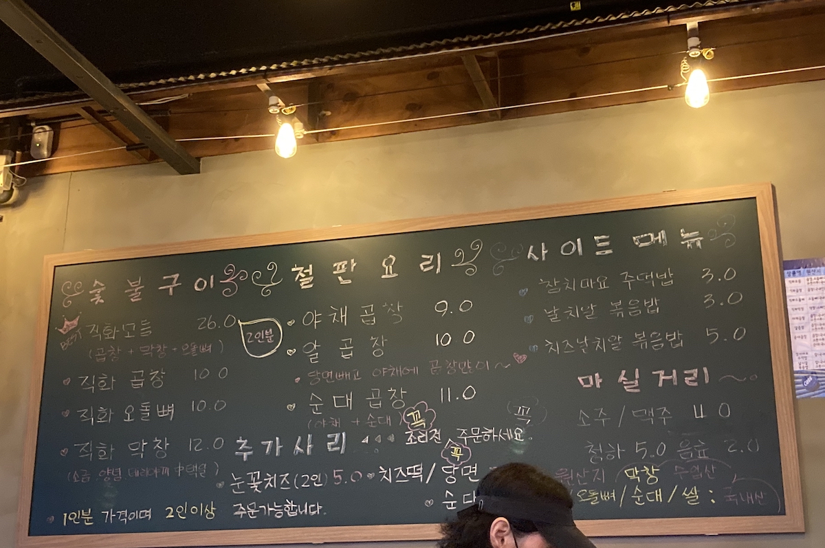어쨌건 우리는 성인남녀 2인이고 BEST라고 당당히 왕관을 쓰고 있는 직화모듬(곱창 + 막창 + 오돌뼈)을 주문했습니다.
